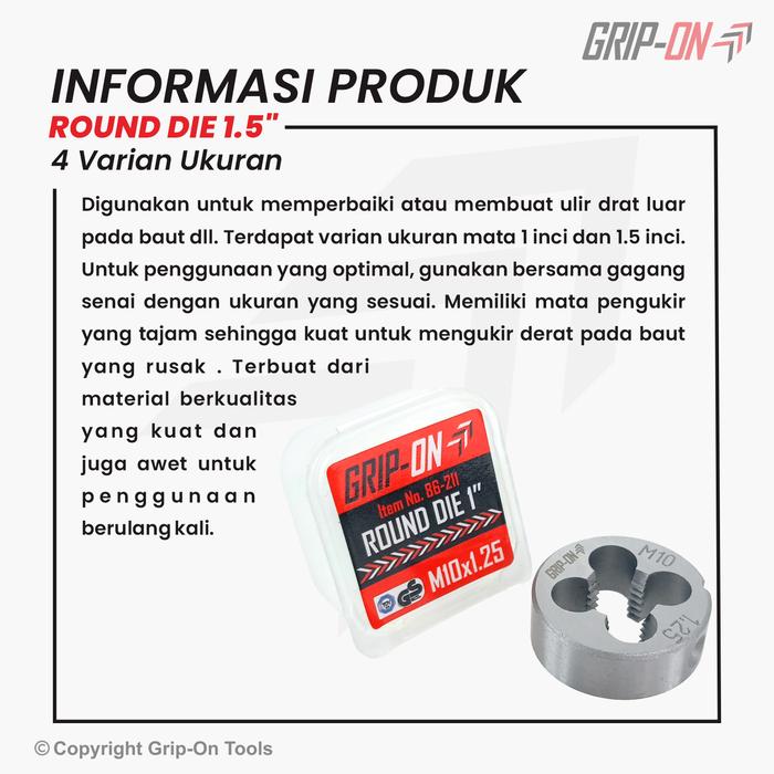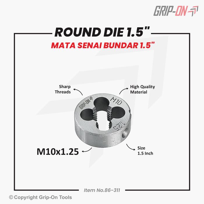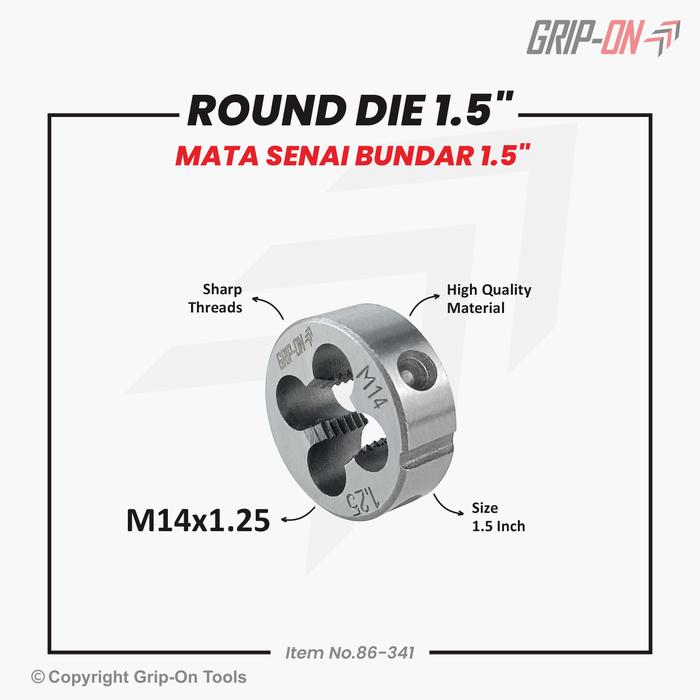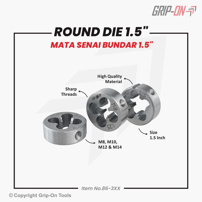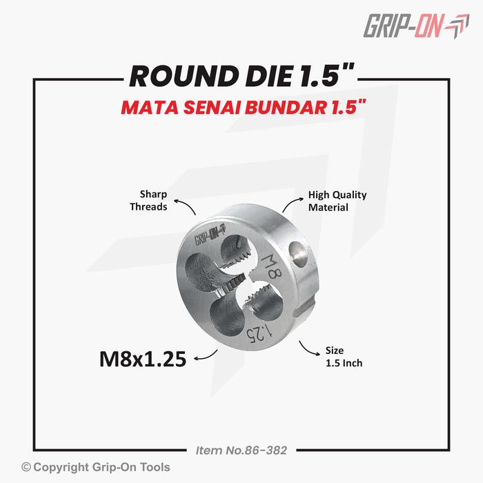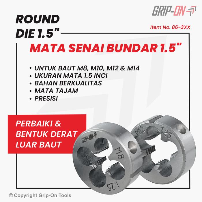 Grip-On Round Die – Grip-On Mata Senai Bundar – Ukuran Mata 1,5”– Perbaiki Bentuk & Derat Luar Baut - M8X1.25
