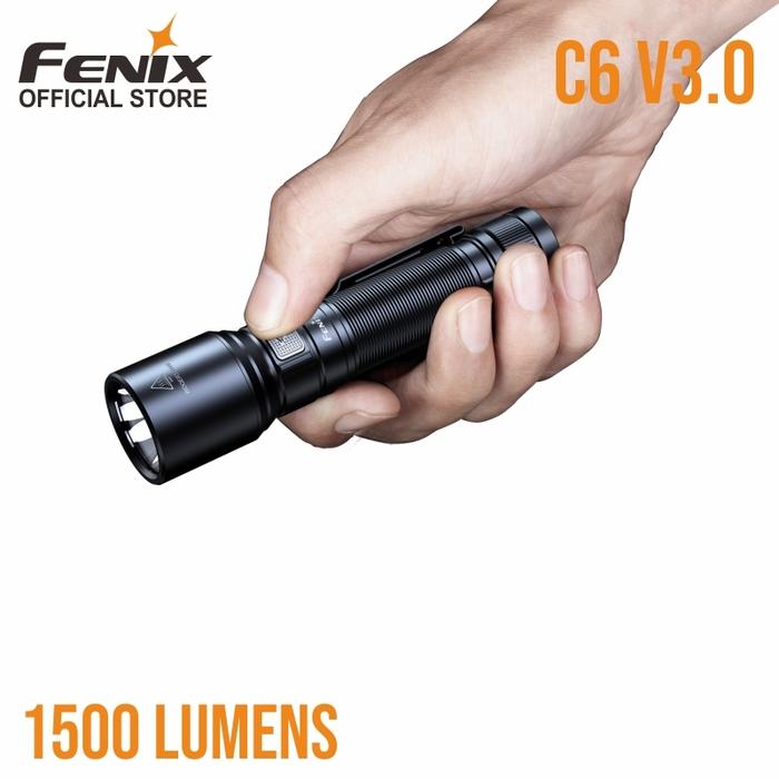 Fenix Senter Led C6 V3.0 Rechargeable Flashlight Terang 1500 Lumens - Black