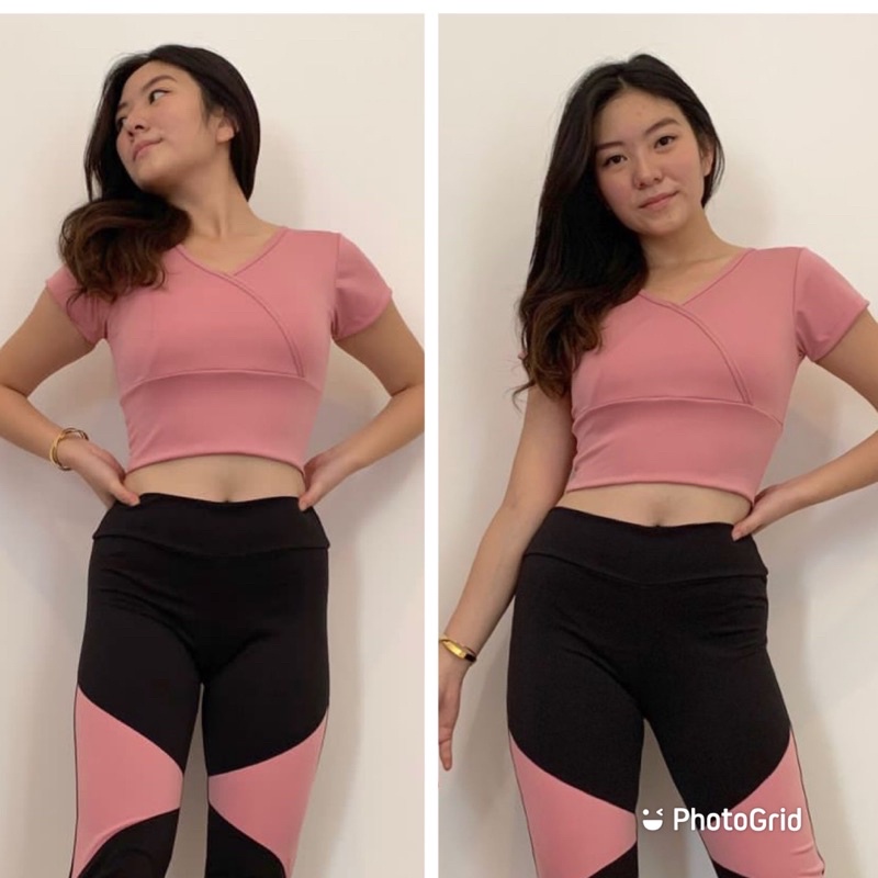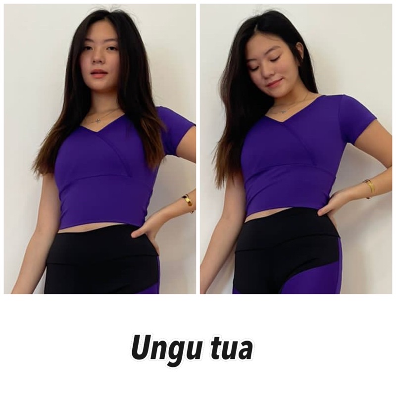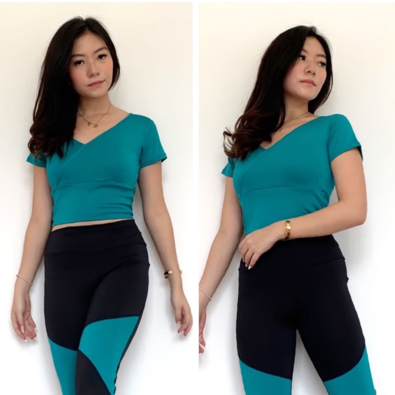 Atasan Senam Aerobik Zumba Yoga Gym Fitness Model Crop V-Neck Pendek