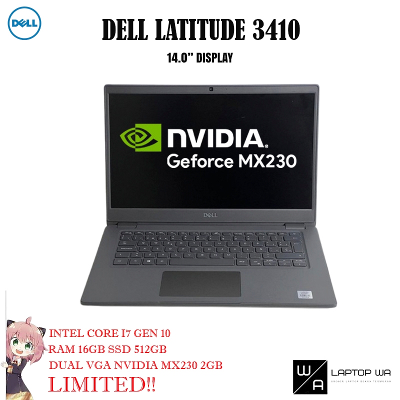 LAPTOP GAMING DELL LATITUDE 3410 CORE I7 GEN 10 RAM 16GB SSD 512GB VGA MX230 2GB LIMITED