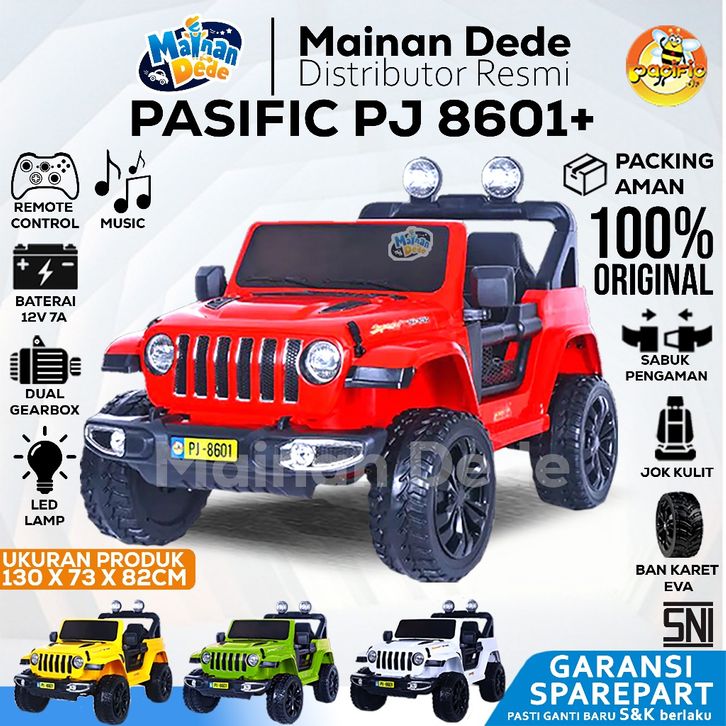Termurah Mainan Mobil Aki Anak Jeep Rubicon Pacific Pj8601+ Ban Karet Jok Kulit