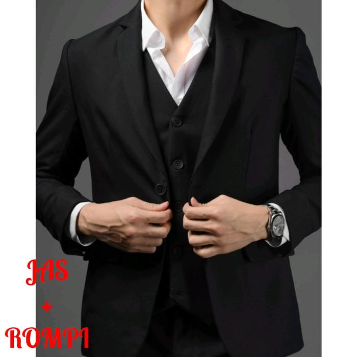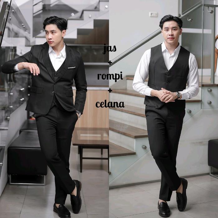 Dvandra.Id Setelan Jas Hitam Pria Original Premium Jas Rompi Celana Jas Blazer Formal Slim Fit - Set Jas 3In1 Fullblack