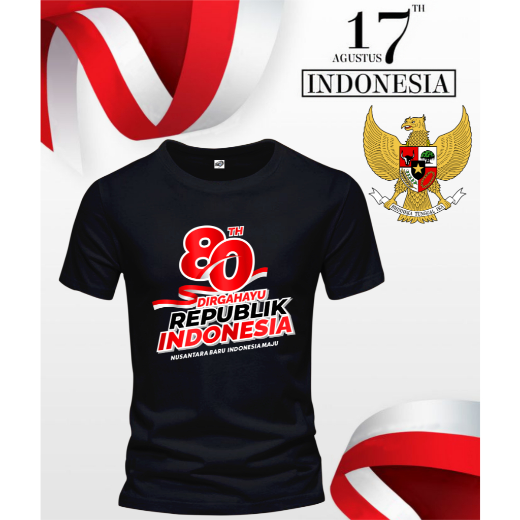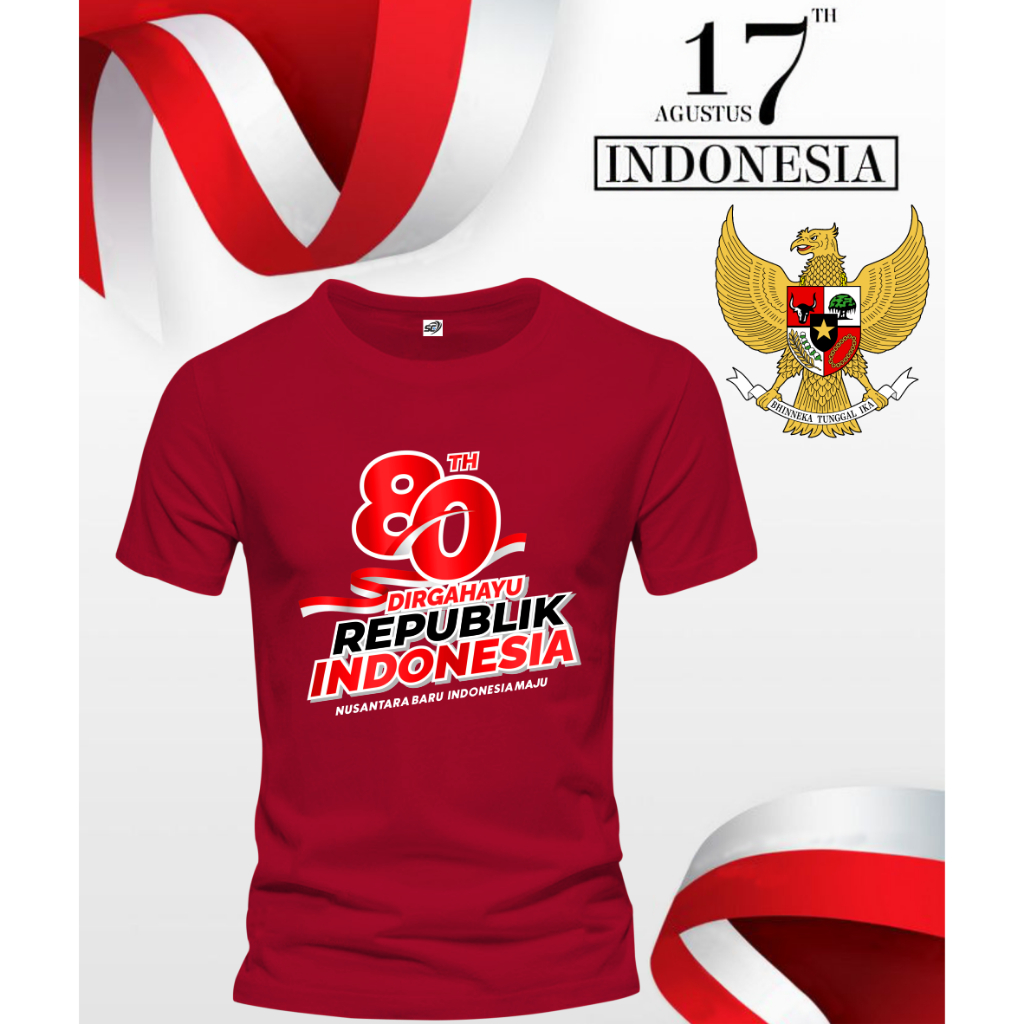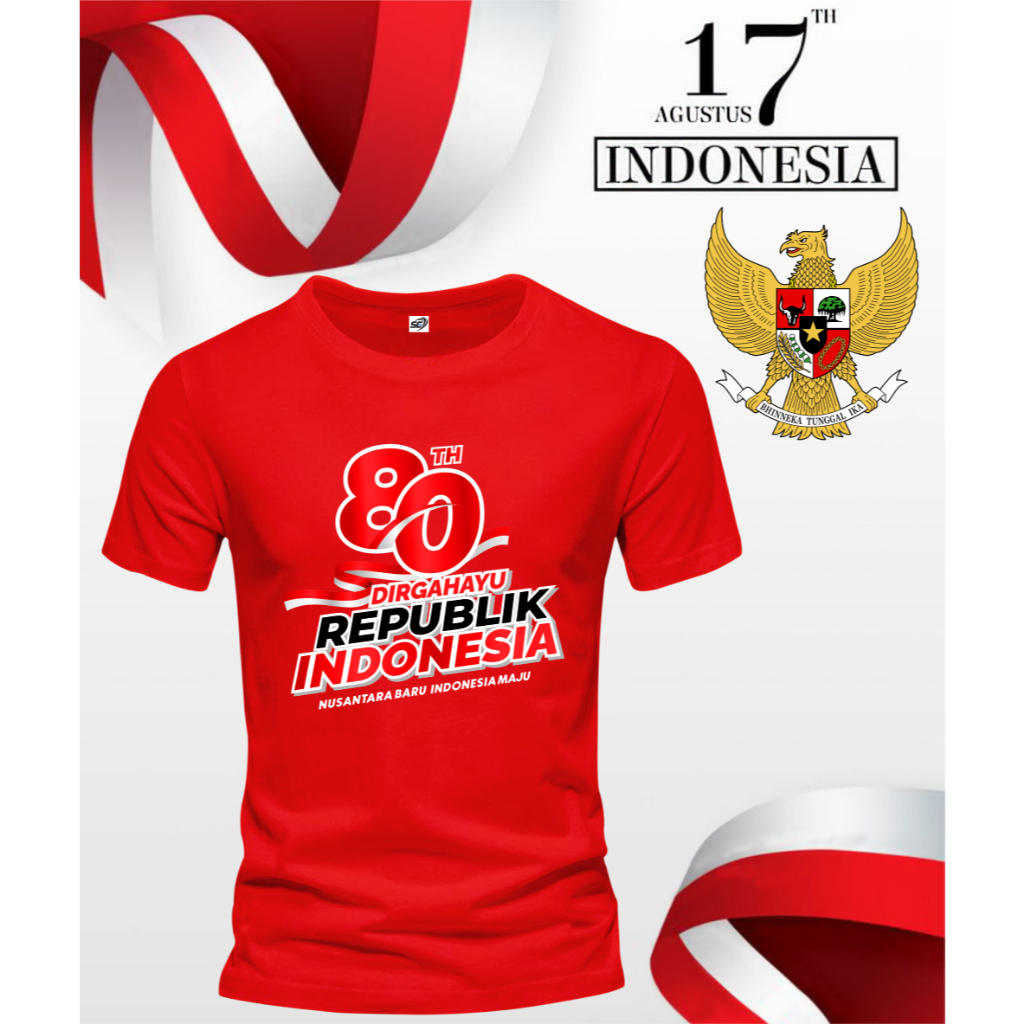 Kaos 17 Agustus 1945 Lengan Pendek,Atasan 17 Agustus 1945,Tersedia Ukuran M-L-XL-XXL