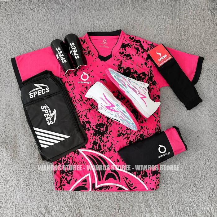 Paket Lengkap Sepatu Futsal Specs Lightspeed Putih Pink Komplit - Pria Wanita - Mag Lightspeed Putih Pink, 41