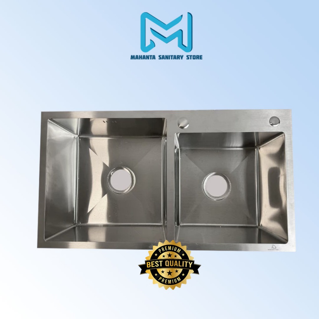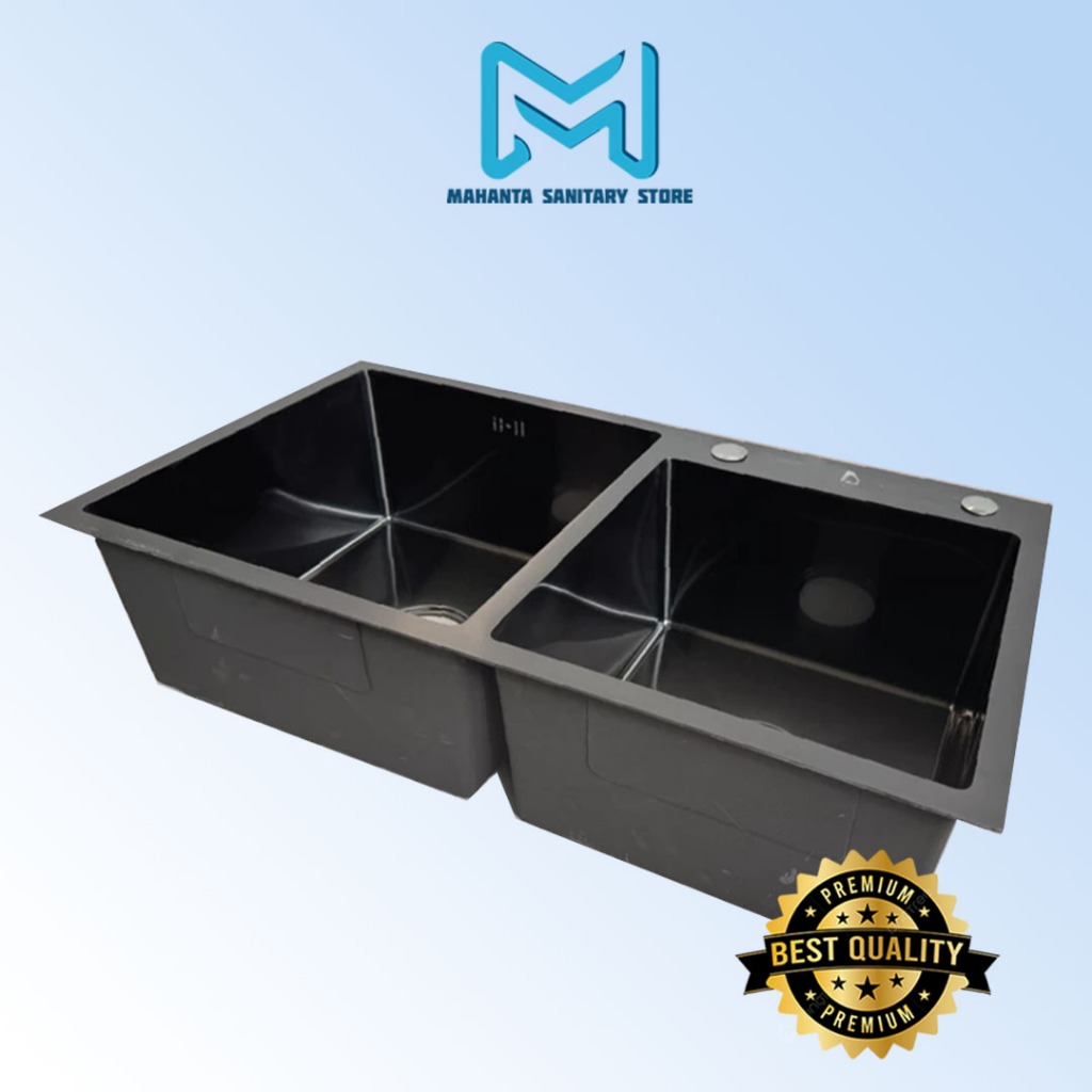 Kitchen Sink 8245 Black Hitam Paket Komplit / Sink Hitam Stainless Steel / Bak Cuci Piring Hitam 2 Lubang Tempat Cuci Pi
