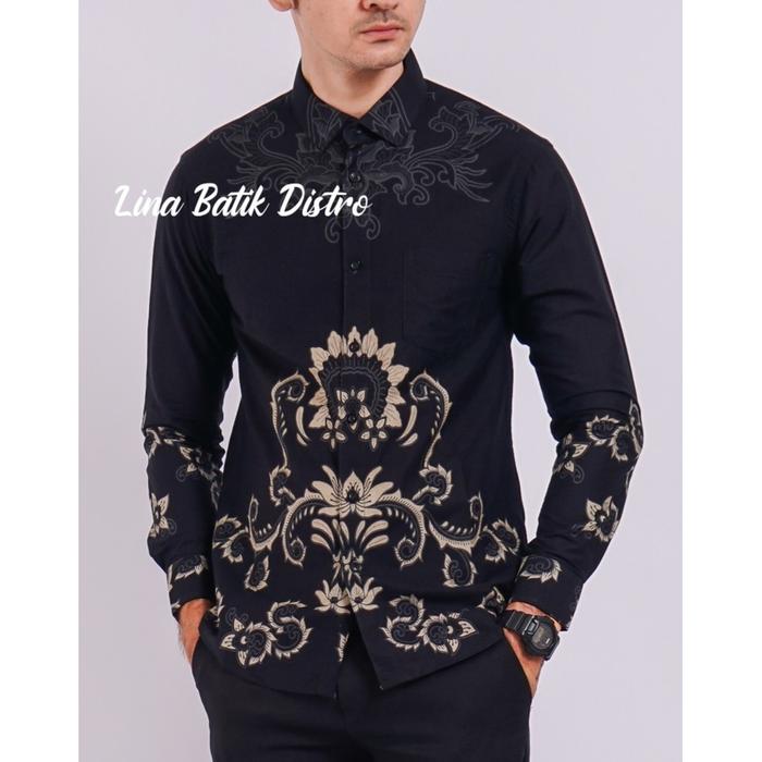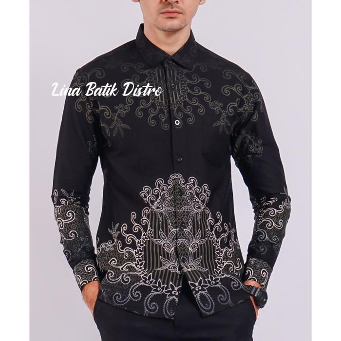 Baju Kemeja Batik Slim Fit Pria Lengan Panjang Kualitas Mall Lb88 - Fr 02 Furing, M