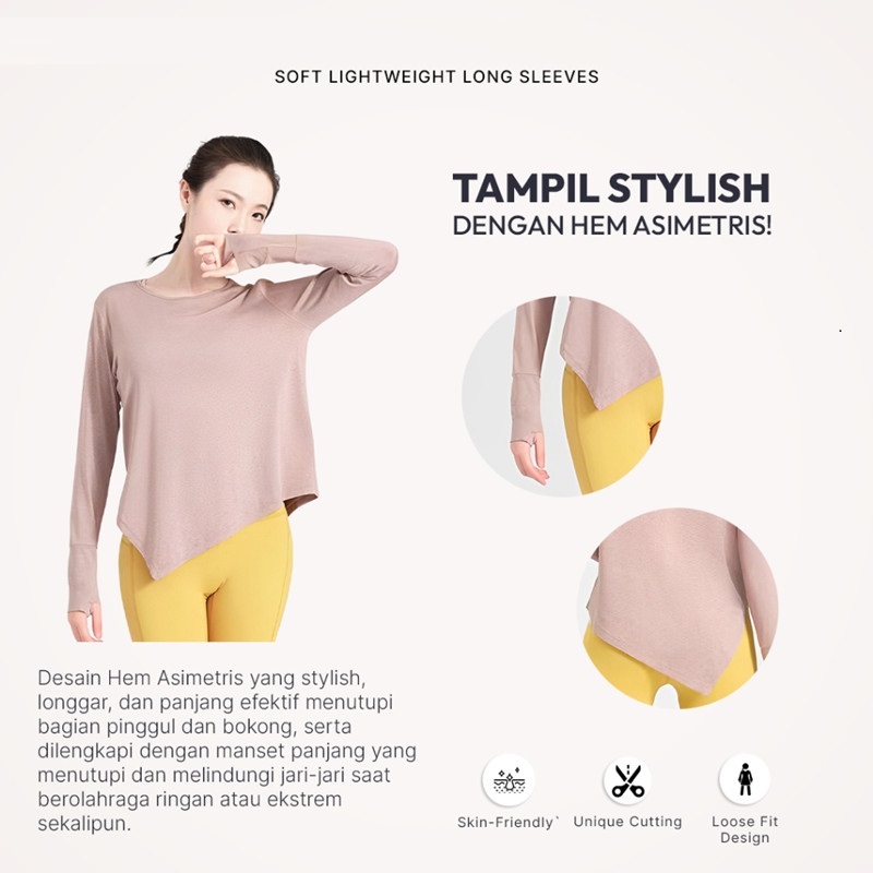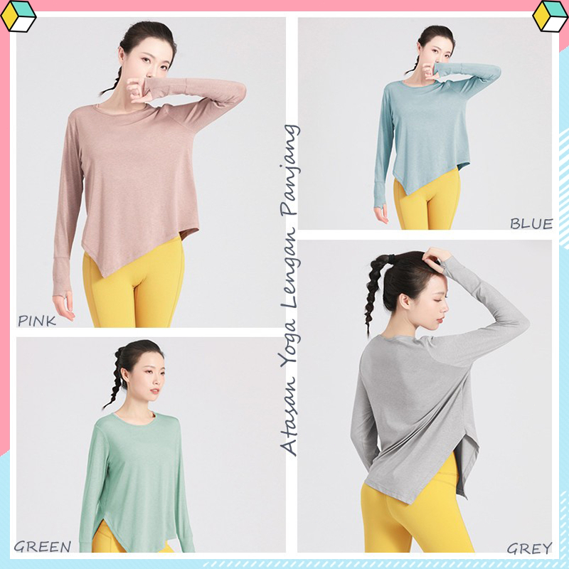 Baju Olahraga Wanita Atau Atasan Olahraga Wanita Lengan Panjang Bernapas Longgar Panjang Lari Kebugaran Blus