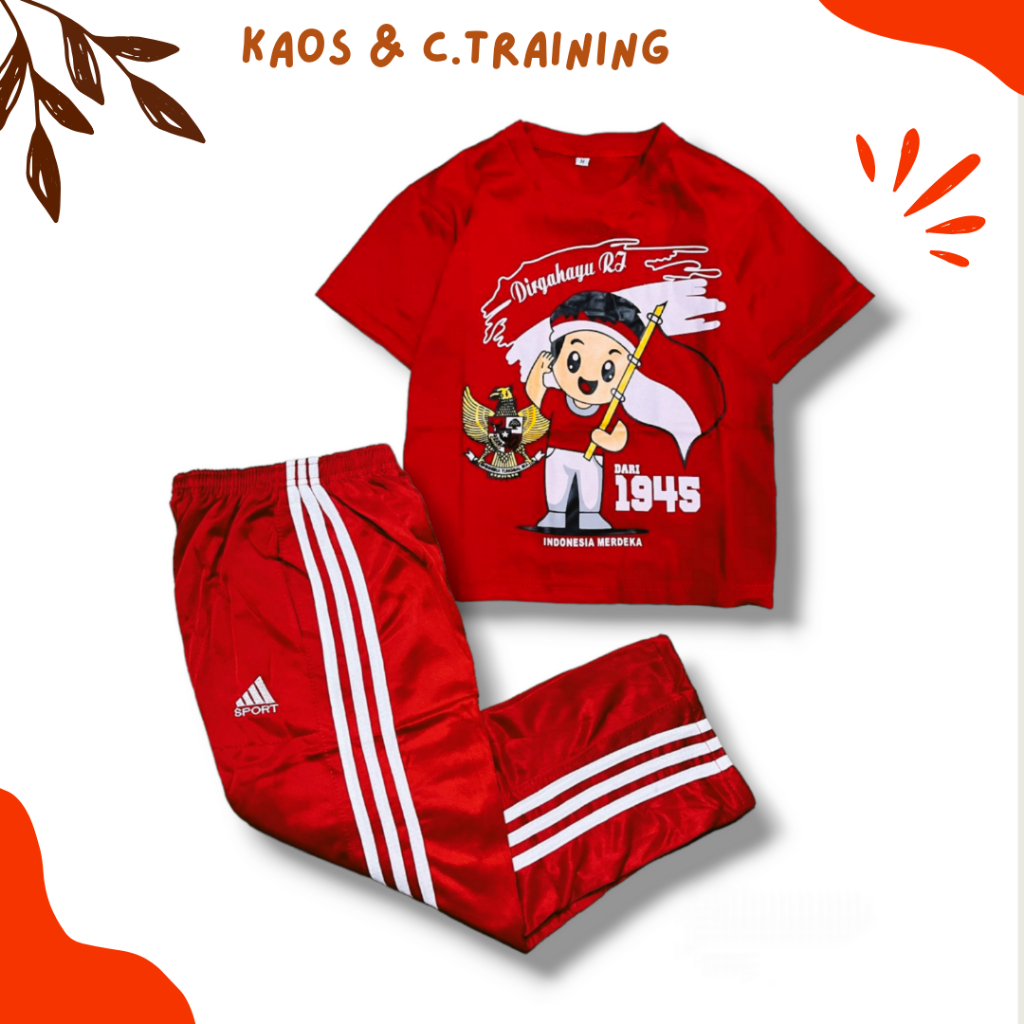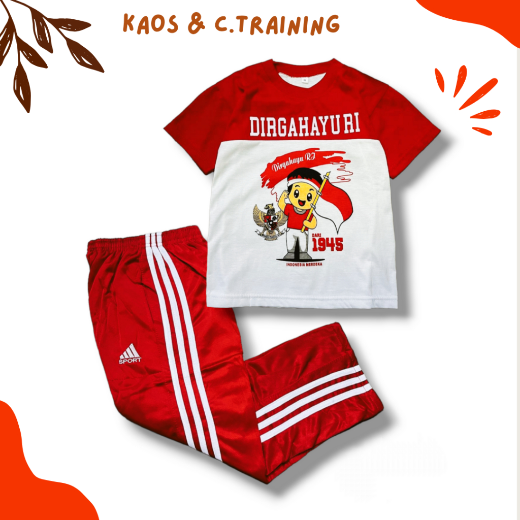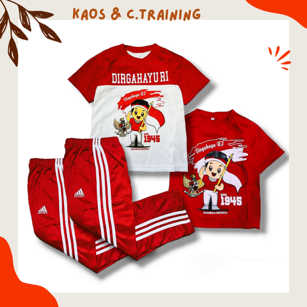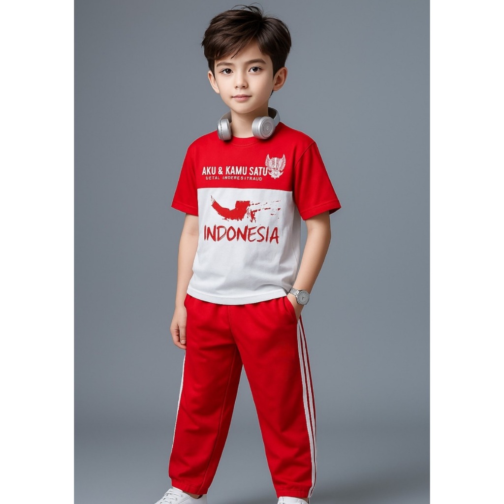 Setelan Merah Putih Agustus Atasan Pendek dan Celana Training Anak Baju Kemerdekaan HUT RI 2024