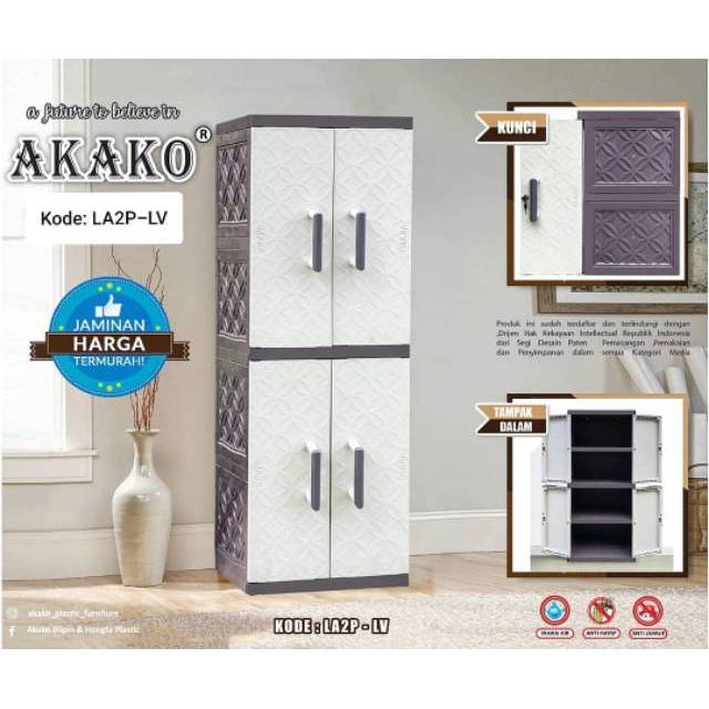 AKAKO - Lemari Plastik Anak 2 Pintu Susun 4 LA2P Full Kunci Louis Vuiton ( NEW )