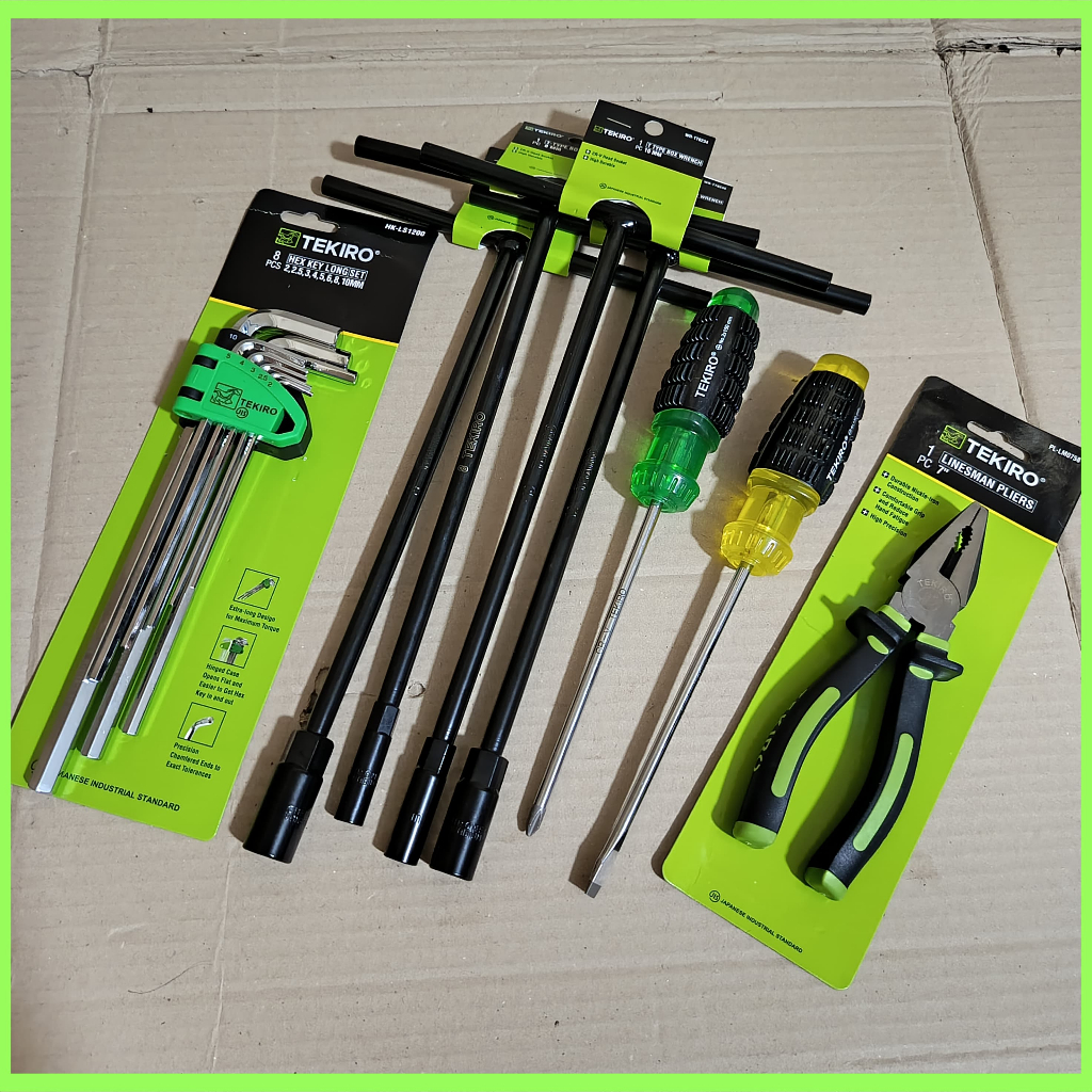 PROMO PAKET TOOLS SET TEKIRO LENGKAP KUNCI SOK T 8-10-12-14MM + TANG KOMBINASI 7INCI + KUNCI L SET 8PCS + OBENG SET 2 PC