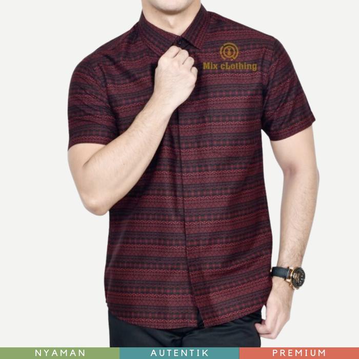 Kemeja Batik Pria Slim Fit / Baju Batik Slimfit Lengan Pendek Cs 16 - Lbs2220, Xxl