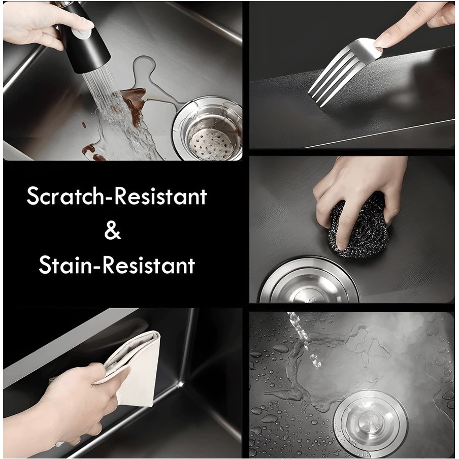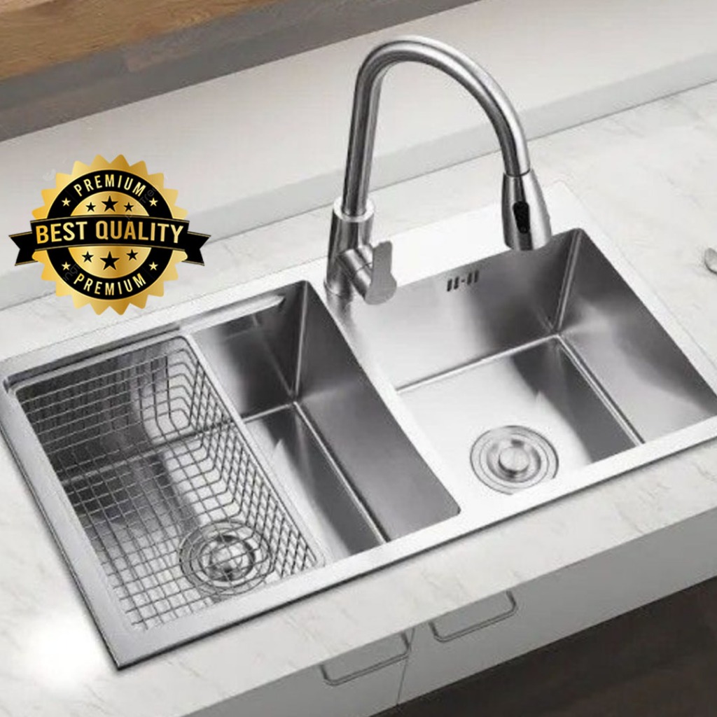 Kitchen Sink Hitam Black 8245 2 lubang JKM/INOBE/OMON/OKI/LG Bak Cuci Piring Hitam Tempat Cucian Cuci Piring Premium Sta