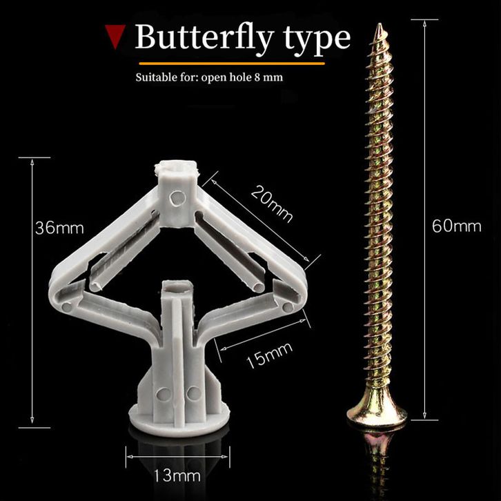 50Set Toggle Gypsum Butterfly/Expanding Anchors Aircraft/Butterfly Expansion Bolt Set/Gypsum