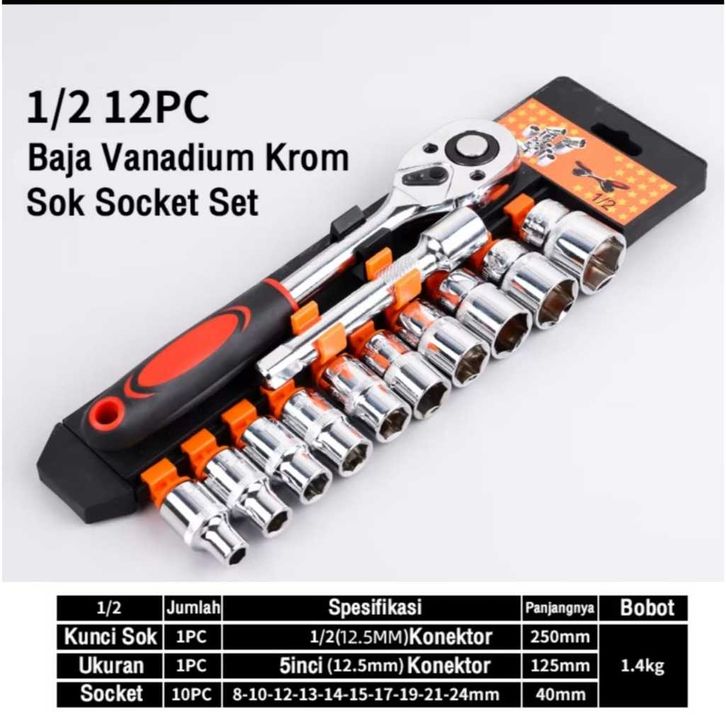 KUNCI RACHET SOCKET SET 1/2" KUNCI SOK SET 12PCS / SOCKET WRENCH SET CR-V
