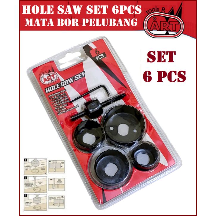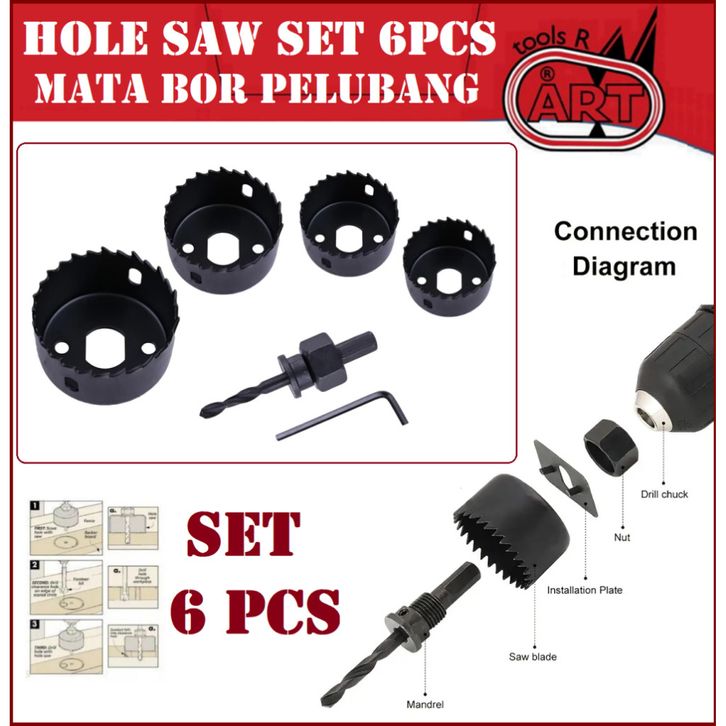 Holesaw set kit Hole Saw Set 6Pcs Hoponik Mata Bor Pelubang PVC Kayu Set 6 Pcs Hole Saw Kit Set