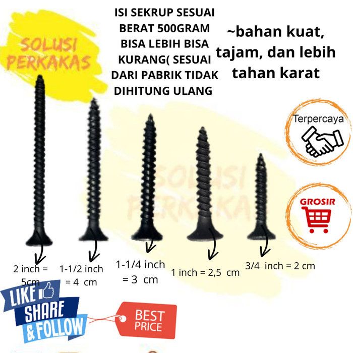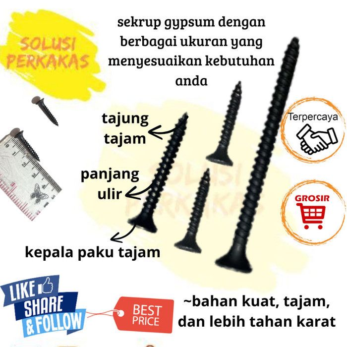 Sekrup Gypsum Skrup Gipsum MILLION GR / Sekrup Baut Gypsum Drywall Screw Baja MUR