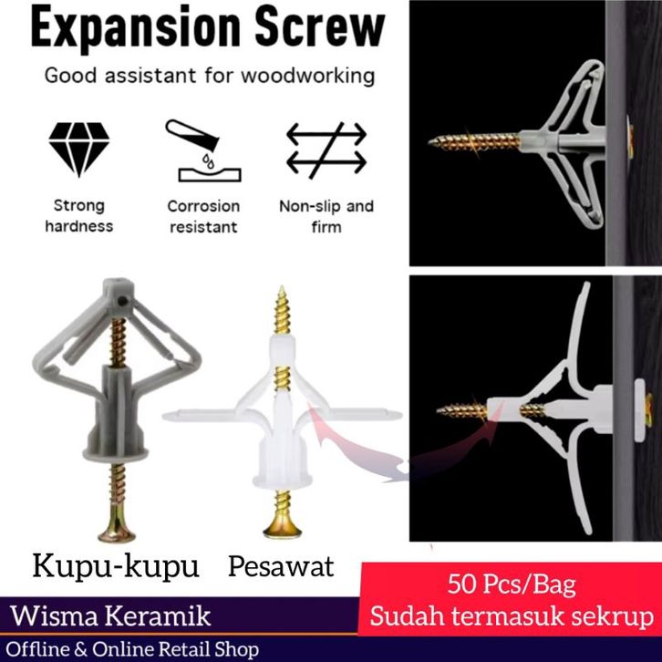 50 set paku gipsum, sekrup gypsum, Pengencang sekrup Gypsum/sekrup gypsum nylon /Expansion Bolt