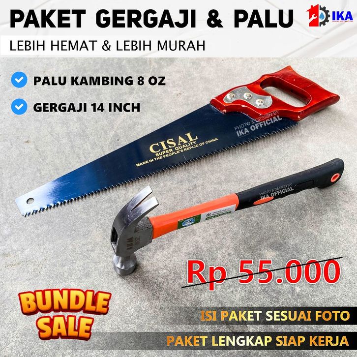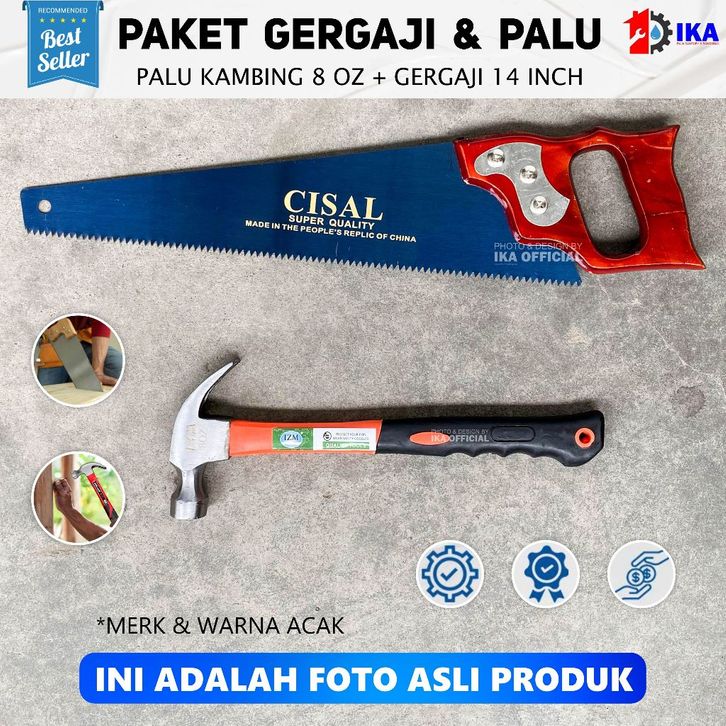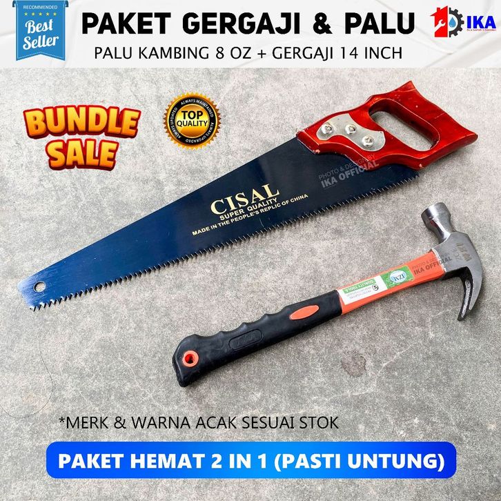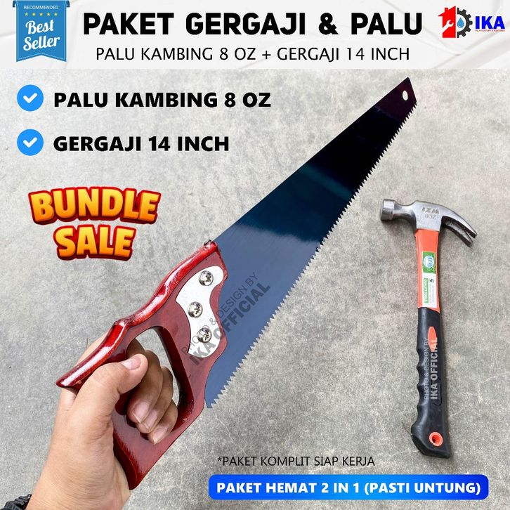 Paket 2 pcs gergaji kayu in palu kambing / gergaji 14 inch / gergaji tajam / palu kambing 8 oz /
