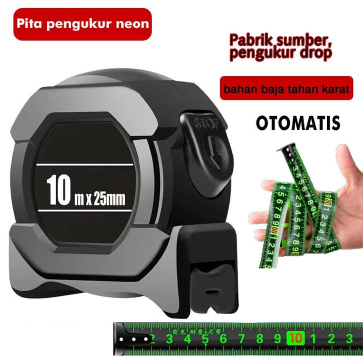 5M/10M Penggaris neon berteknologi hitam meteran anti karat dengan pita pengukur impor menebal