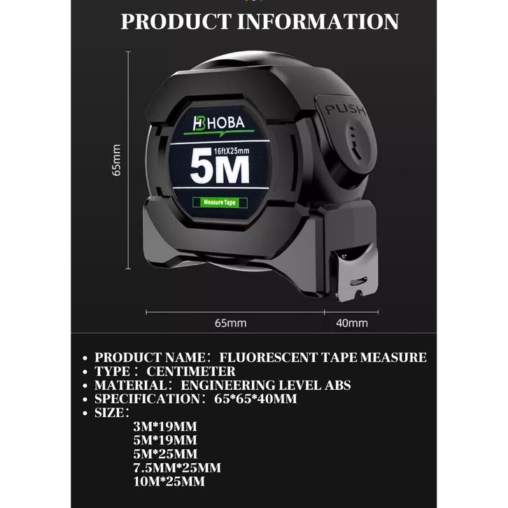 Pita Pengukur Penggaris Berteknologi Hitam Meteran Anti Karat Dengan Pita Pengukur Impor Menebal
