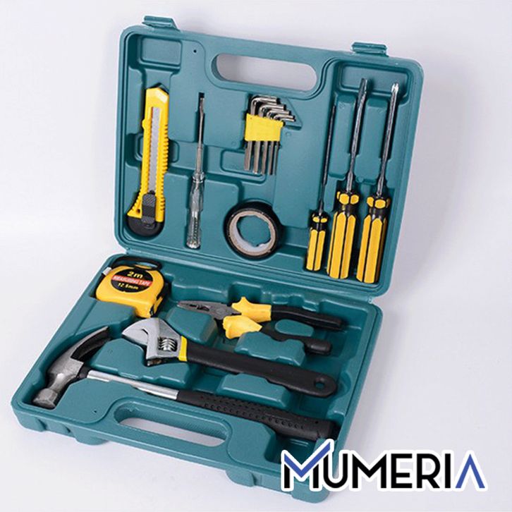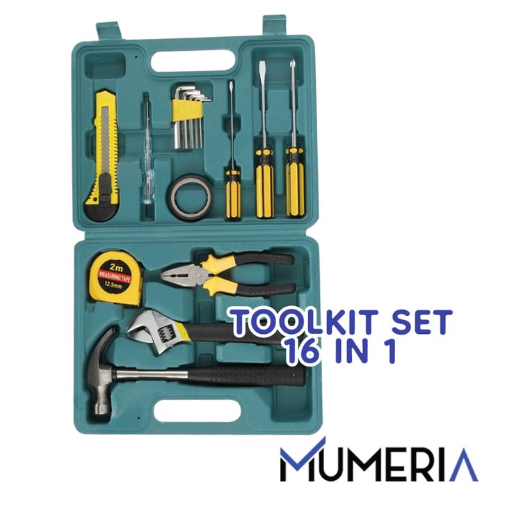 Tool Kit Set Perkakas 16 In 1 Alat Perlengkapan Pertukangan Perbaikan Reparasi Kunci L Meteran Obeng