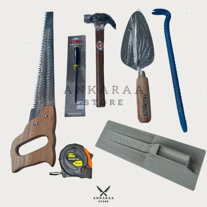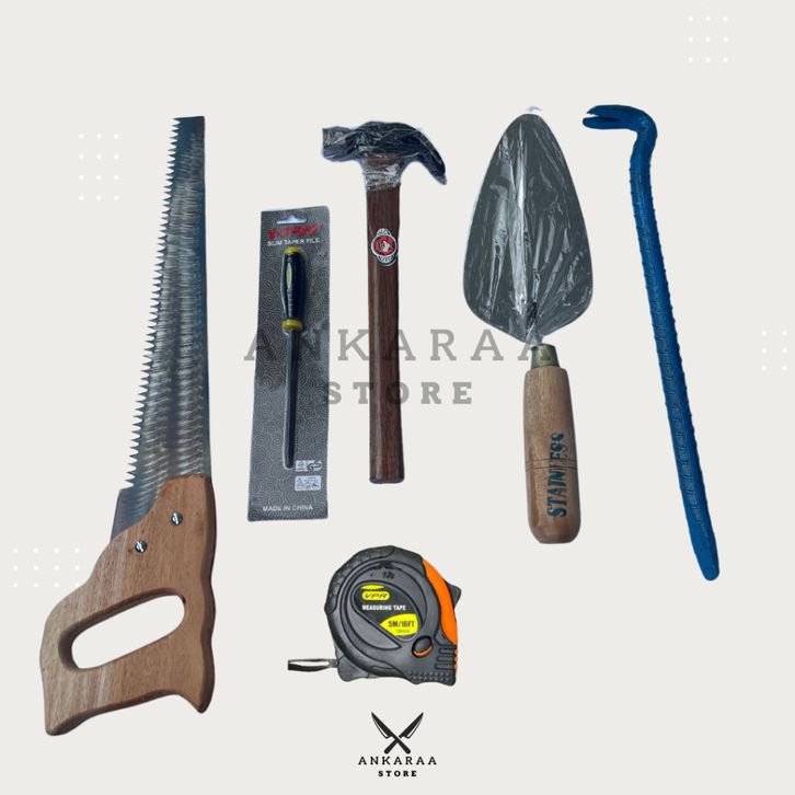 PAKET ALAT PERTUKANGAN GERGAJI KAYU + PALU + LINGGIS + CETOK + KIKIR + METERAN + ROSKAM