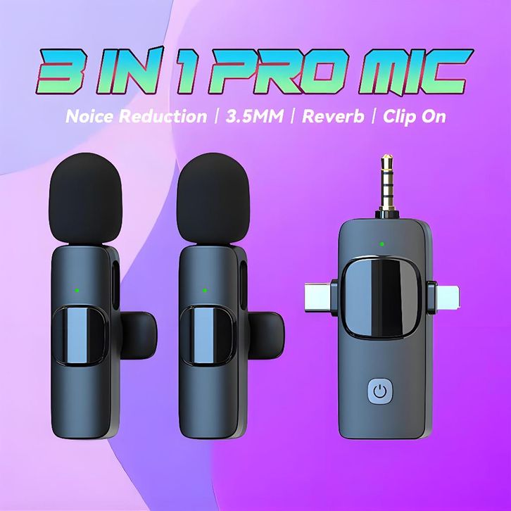 TERLAKU 3 In 1 Pro Mic 3.5mm Mikrofon Nirkabel Lavalier Mic Portabel Audio Video Pembuatan Rekaman Wireless
