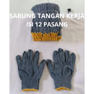 PROMO Sarung Tangan Kerja Isi 12 Pasang Bahan Kain Rajut Tebal odikk