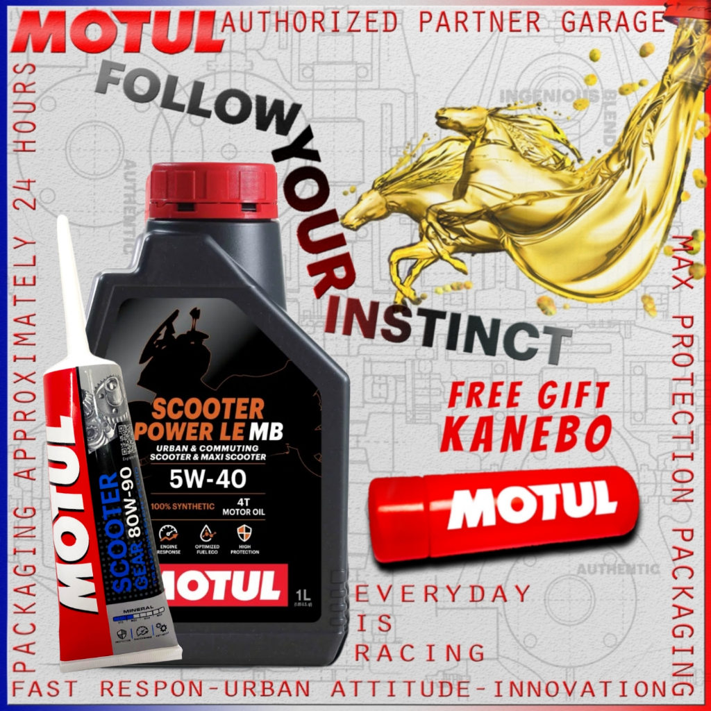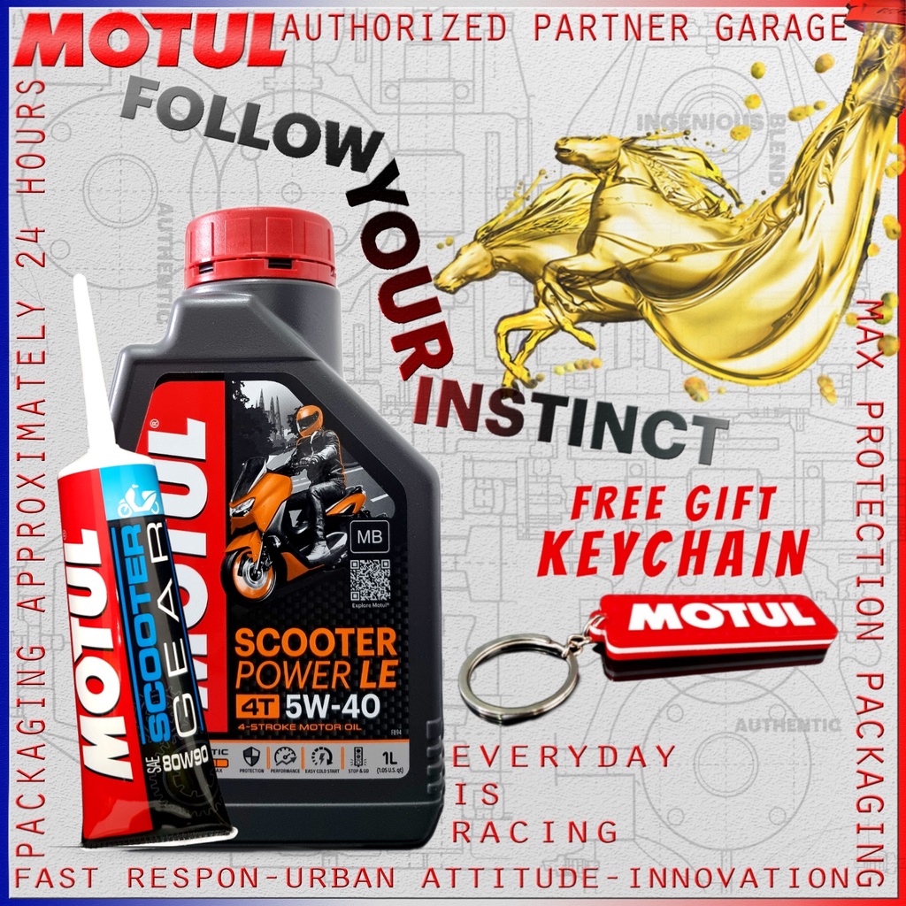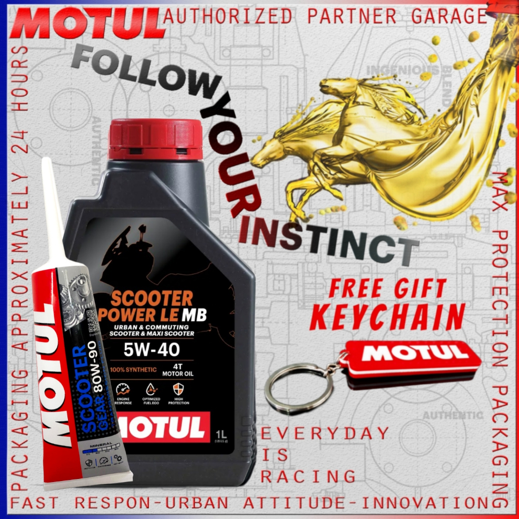 PAKET BUNDLE 1L HEMAT OLI MATIC MOTUL POWER LE 5W40 1000ml dan SCOOTER GEAR 80W90 120ml IMPORT BONUS KANEBO MOTUL KEYCH