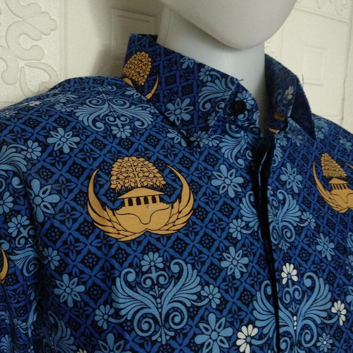 Baju Korpri Pria Seragam Pns Kemeja Batik Biru Panjang Full Furing - S, Motif Baru