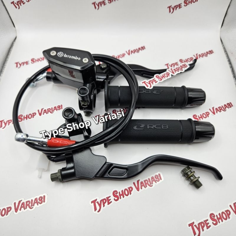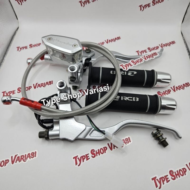 Baru Paket Lengkap 4in1 Master Rem Tabung Tipe Oval Dan Kotak Silver Hitam+ Handgrip RCB HG55 + Jalu Stang Cnc + Selang