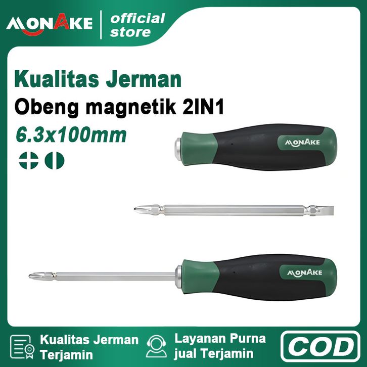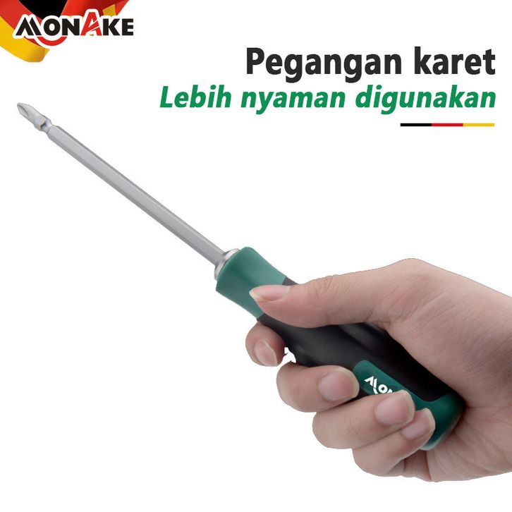 MONAKE German Tools 2in1 Minus/Obeng Magnet CRV 3 Inch/4 Inch/5 Inch Multifungsi Plus