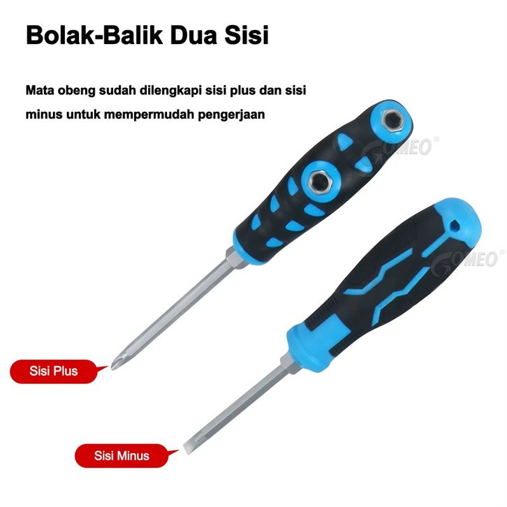 Obeng Bolak-Balik Tembus 3 Posisi GOMEO Ketok Plus Minus 2 Way Magnet Multifungsi Gagang Karet