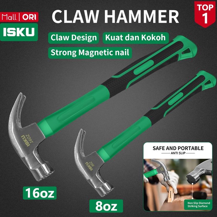 ISKU Palu Kambing Claw Hammer Palu Martil Cungkil Paku 8oz/16oz Carbon Steel Anti Slip Palu Tangan