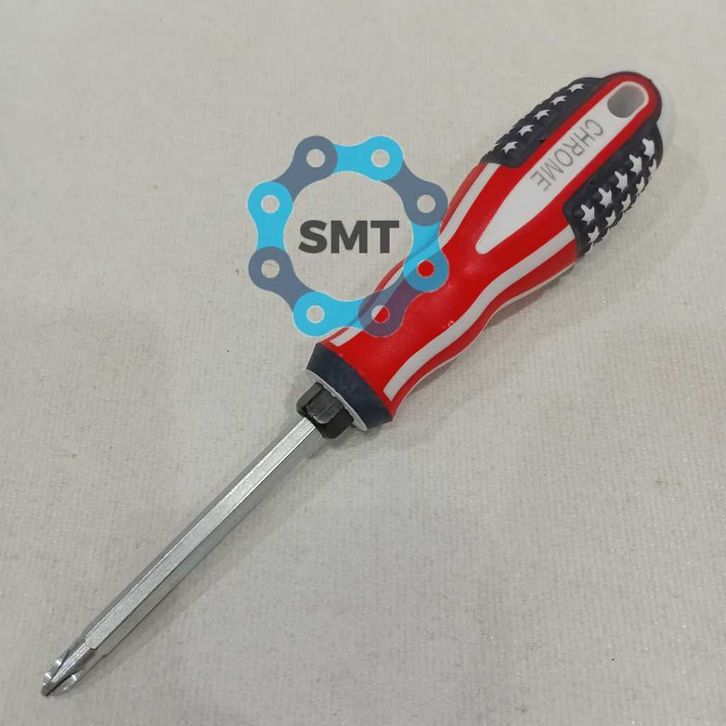 Obeng Bolak Balik USA Amerika Murah 4 4 inch Gagang Karet Min Plus - + 2 Way 2 In 1