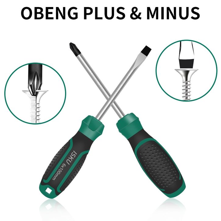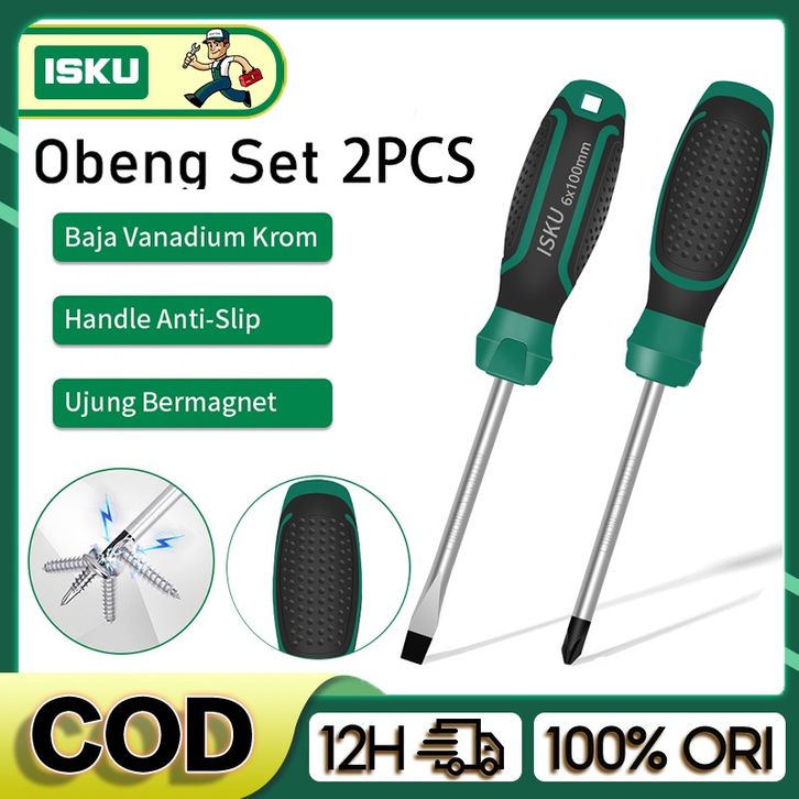 ISKU Obeng Set 2pcs Plus Minus/Screwdriver Set 2pcs Tip Magnetik Obeng Set CR-V