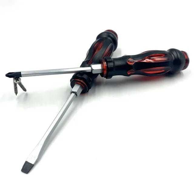Obeng Ketok Bolak Balik - Obeng Getok Plus Minus Magnet 6" inch Gagang Fiber Karet Besi