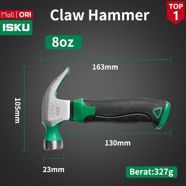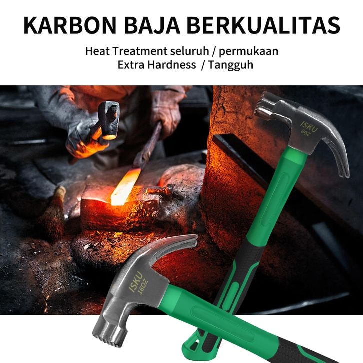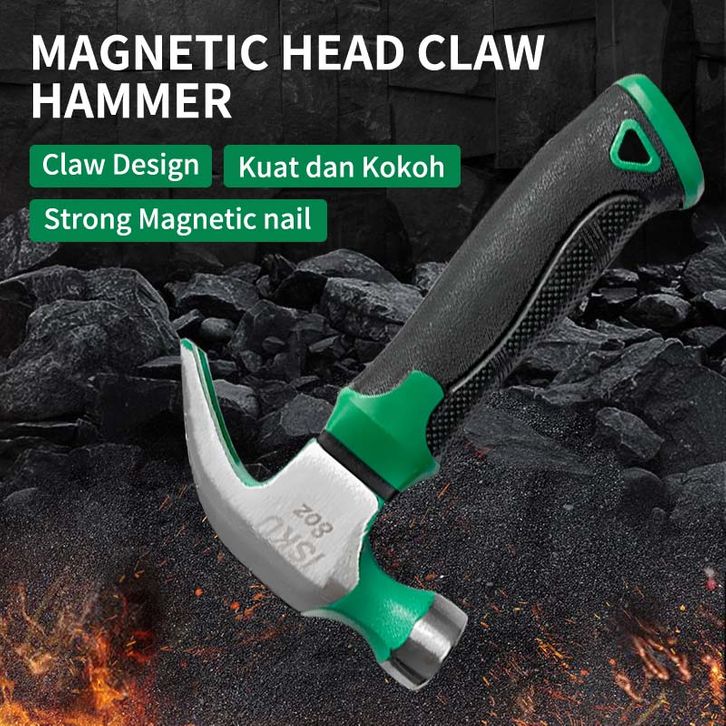 ISKU Palu Kambing Magnetik 8/16 OZ Bahan 45# Steel Martil Claw Hammer Carbon Steel Anti Slip Steel