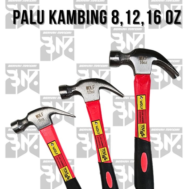 Palu Kambing WOLF 8/12/16 Oz Claw Hammer Palu Martil Cungkil Paku Palu Cukit Gagang Fiber