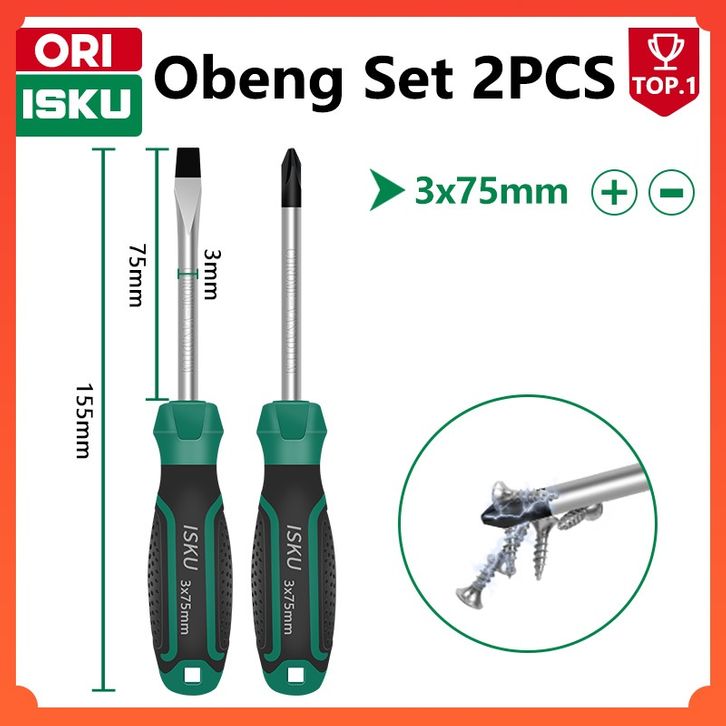 ISKU Obeng Set Screwdriver Sets 2PCS 375mm + Plus / Minus Magnet 2 in1 komplit Obeng Super Kuat