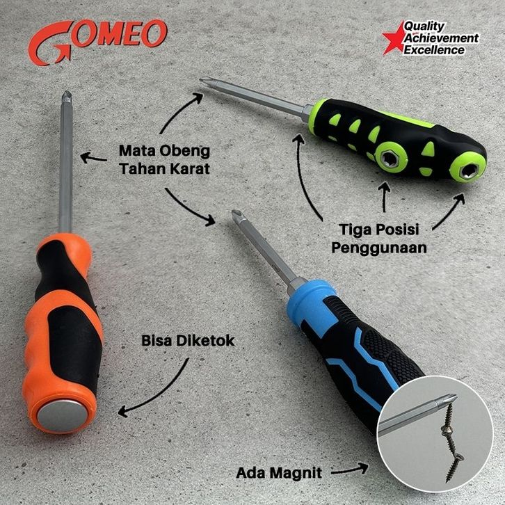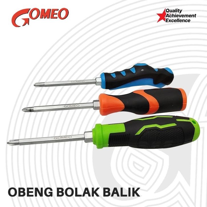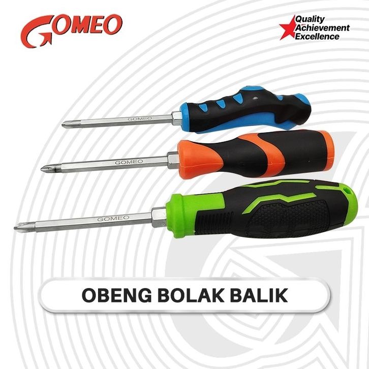 GOMEO Obeng Bolak Balik Magnit Plus Minus Gagang Karet Obeng Ketok