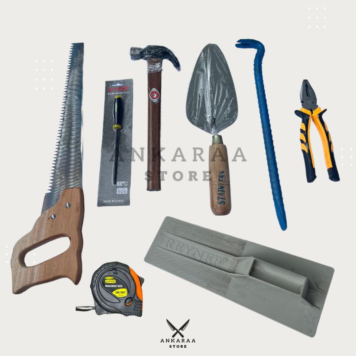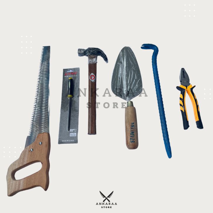 PAKET ALAT PERTUKANGAN GERGAJI KAYU + PALU + LINGGIS + CETOK + KIKIR + METERAN + ROSKAM