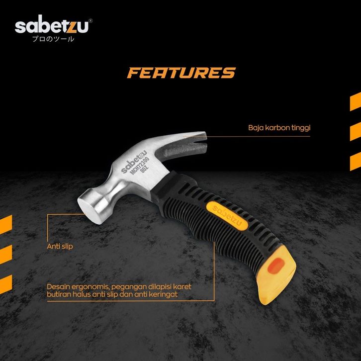 SABETZU Palu Cebol Mini 8 Oz Gagang Karet Palu Kambing Pendek Mini Claw Hammer - Palu Kambing Gagang