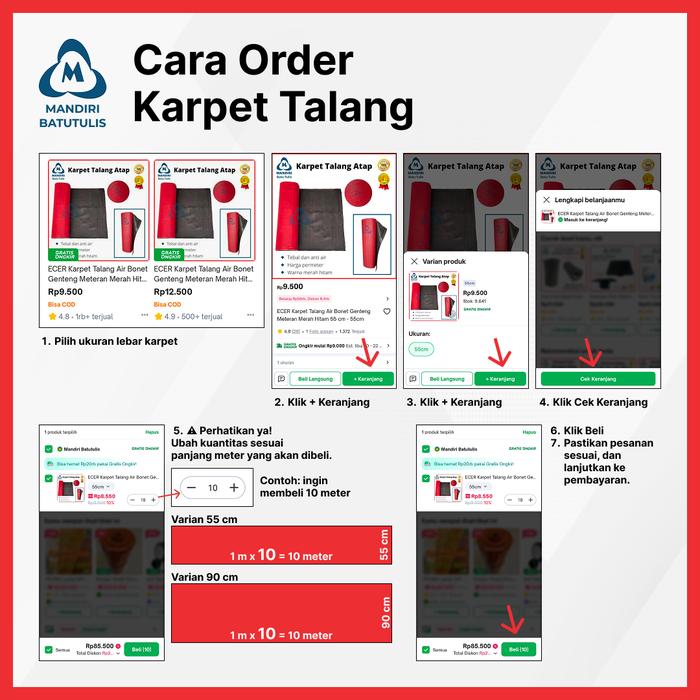 ECER Karpet Talang Air Bonet Genteng Meteran Merah Hitam 55 cm - 55cm