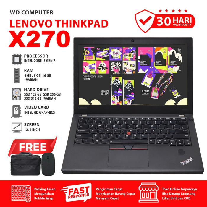 Wd Computer Lenovo Thinkpad X270 Intel Core I5 Gen 7 Ram 8Gb Ssd 128Gb Layar 12.5 Inch Garansi 30 Hari Bonus Tas Laptop