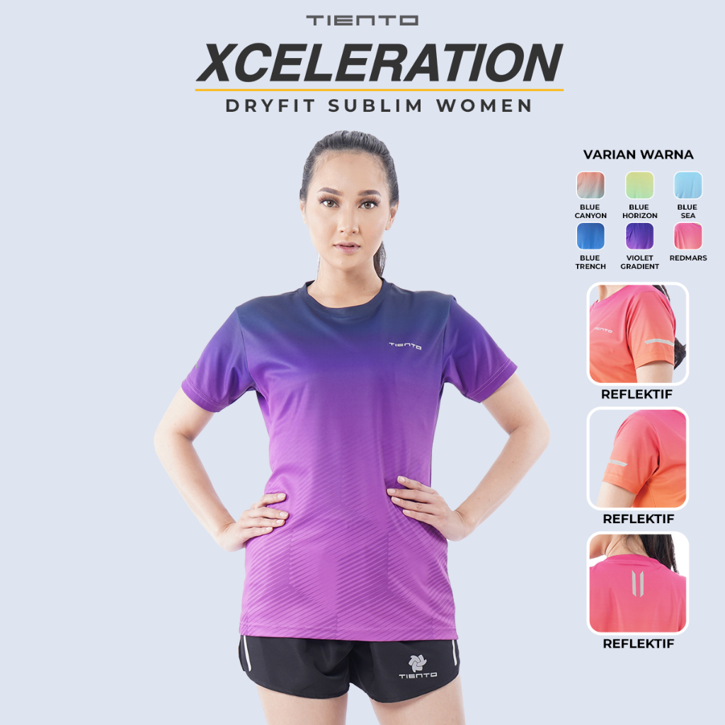 Tiento Baju Olahraga Lari Jersey Running Wanita Anti UV Xceleration