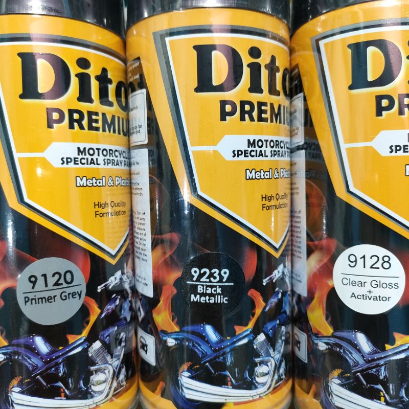 Pilok Paket Lengkap Cat Diton Premium Primer Grey 9120 Black Metallic 9239 Clear Gloss 9128 400cc.. Pilok Paketan Black