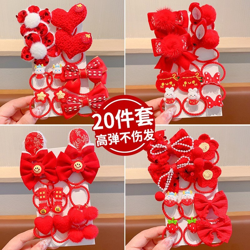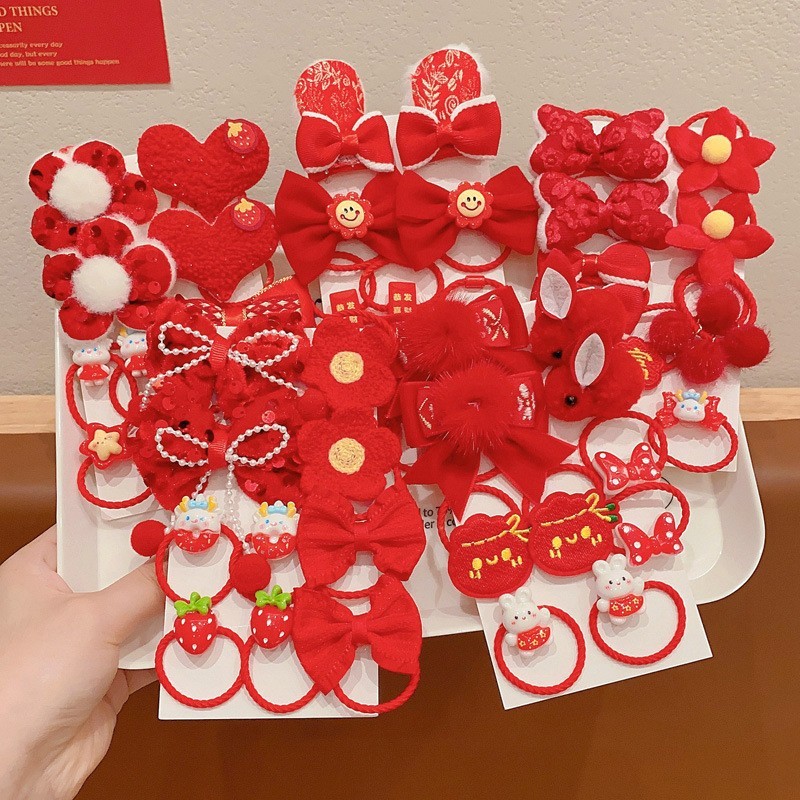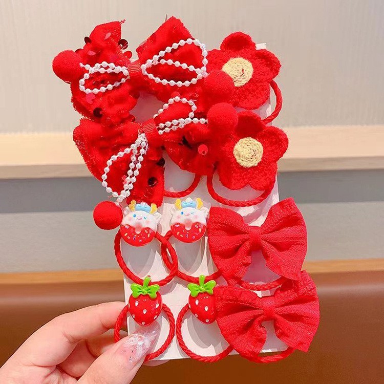 Ikat Rambut Pita Merah - Aksesoris Rambut Anak dengan Karet Gelang Lucu - Fashion