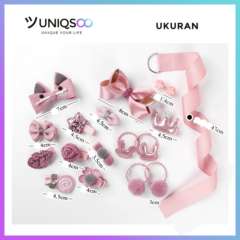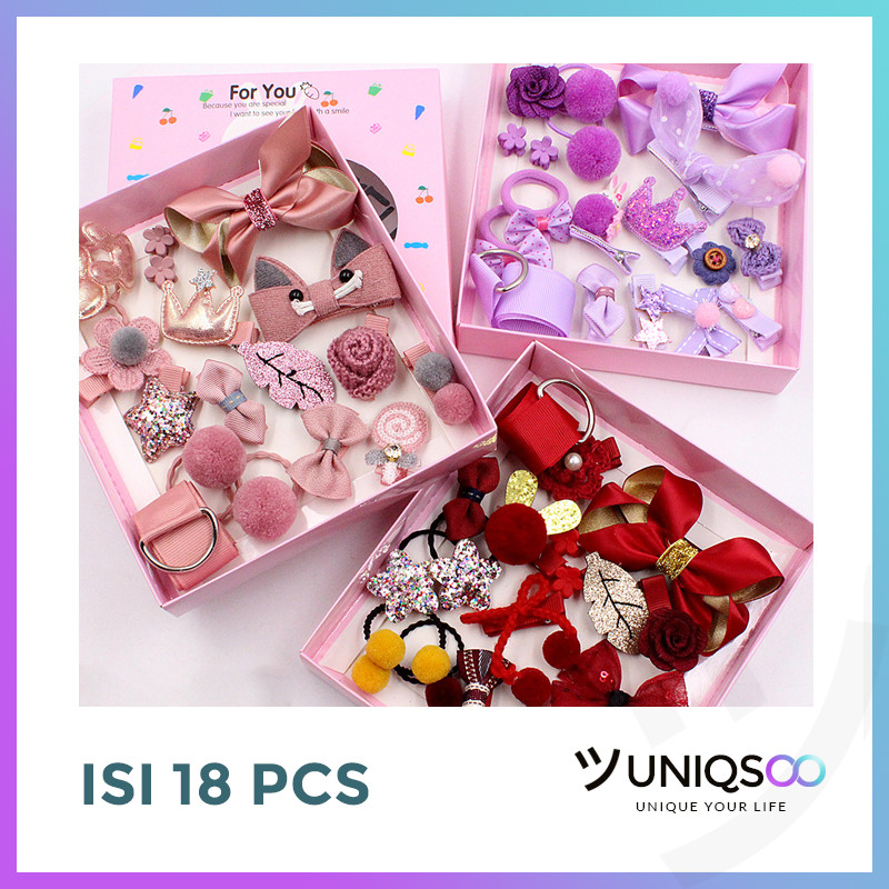 UNIQSOO 18pcs Set Jepit Rambut Anak Perempuan Ikat Rambut Karet Pita Gaya Korea Hampers Souvenir Hadiah Gift SP016