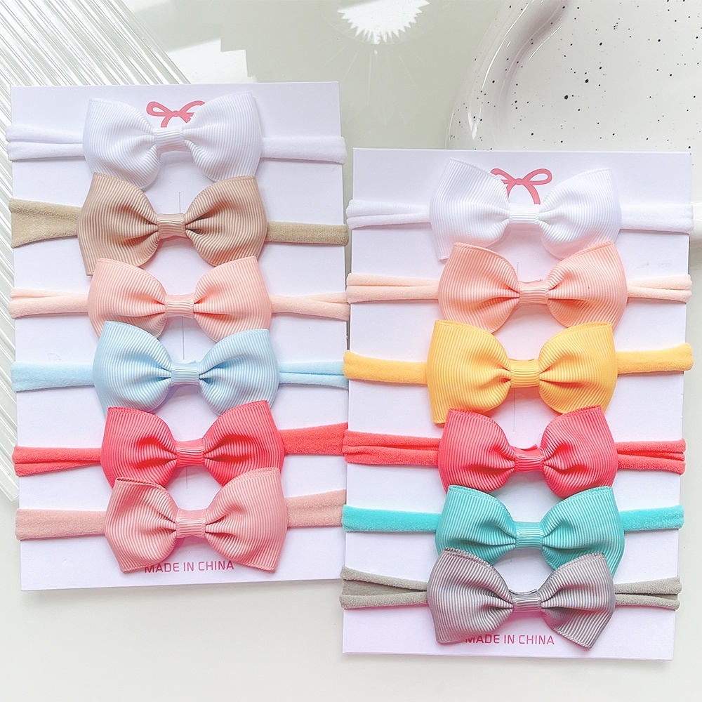6 pcs/set solid warna anak -anak yang baru lahir pita rambut elastis untuk anak perempuan lucu pita bowknot aksesoris ra